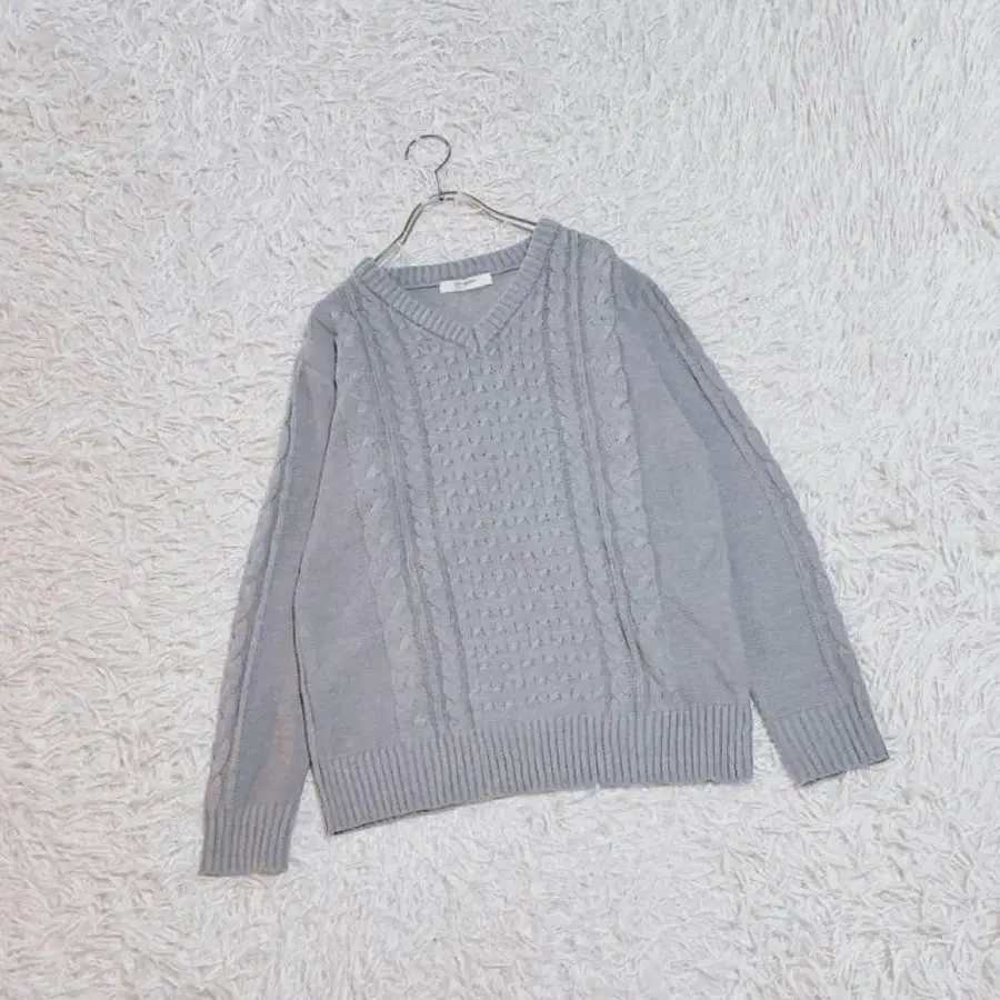 • 세일 페이크 레이어드 니트 그레이 V넥 케이블 도킹 니트