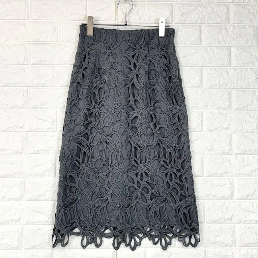 인덱스/S/그레이/꽃무늬/레이스 스커트/종아리 기장/전체 레이스/봄/가을
