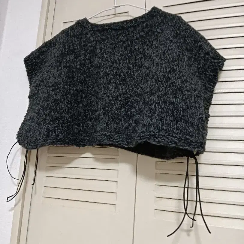 핸드메이드 블랙 그레이 mix 초와이드 울 100% 크롭 니트 베스트