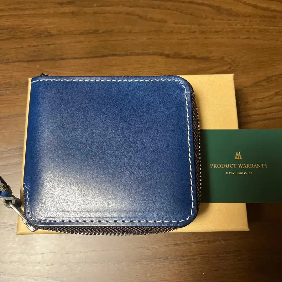 PRODCT WARRANTY 파란색 가죽 접이식 지갑