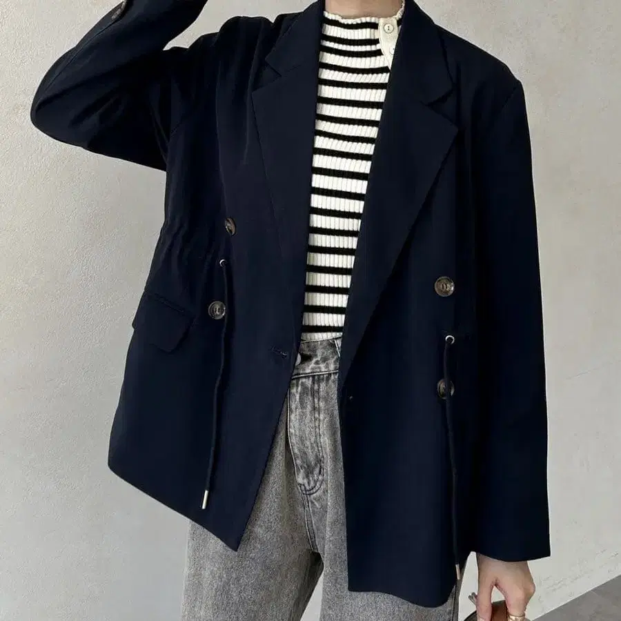 [택 포함 새상품] 허리 드로스트 테일러드 자켓 네이비