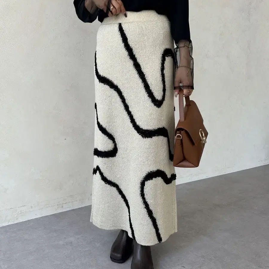 [택 포함 새상품] 라인 자카드 니트 내로우 스커트 아이보리