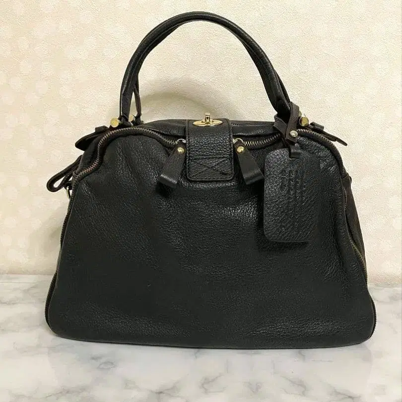 천연 가죽 2Way 핸드백 숄더백 블랙