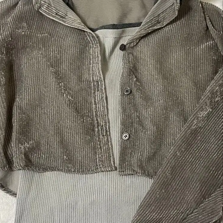 시어 코듀로이 소매 슬릿 버튼 셔츠 2WAY 리브 니트 탱크