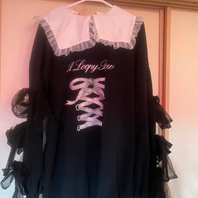 AnkRouge 블랙 프릴 소매 트레이닝복 원피스