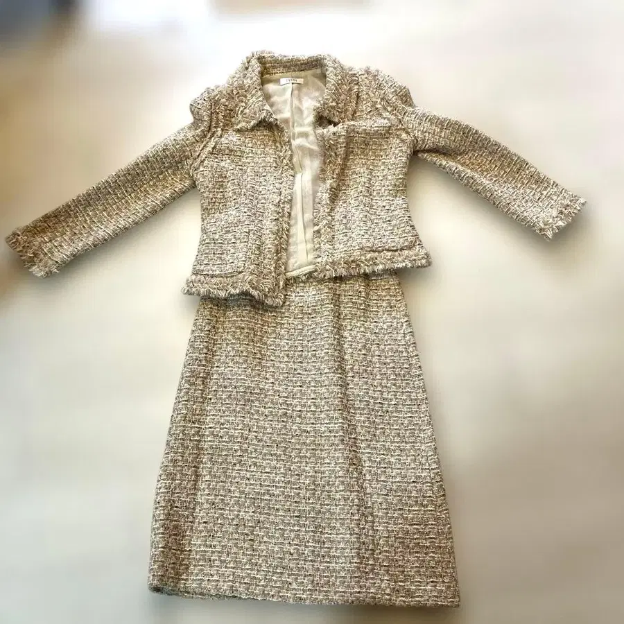 SUING 베이지 계열 트위드 스커트 수트