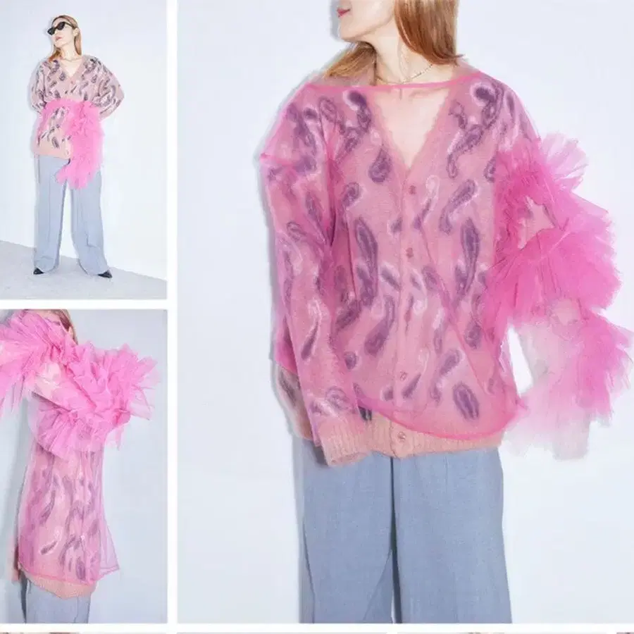 [ 가격 인하 가능 ] MARGE / 마지 별주 TULE 블라우스 핑크