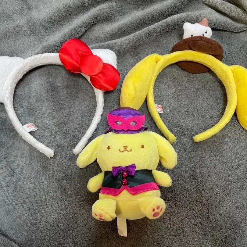 키티 폼폼푸딩 머리띠 봉제 인형 3종 세트