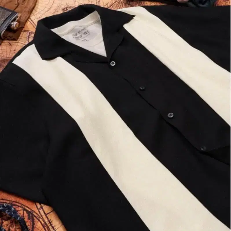 [karaku] 이소재 콤비 쿠바 컬러 반팔 셔츠