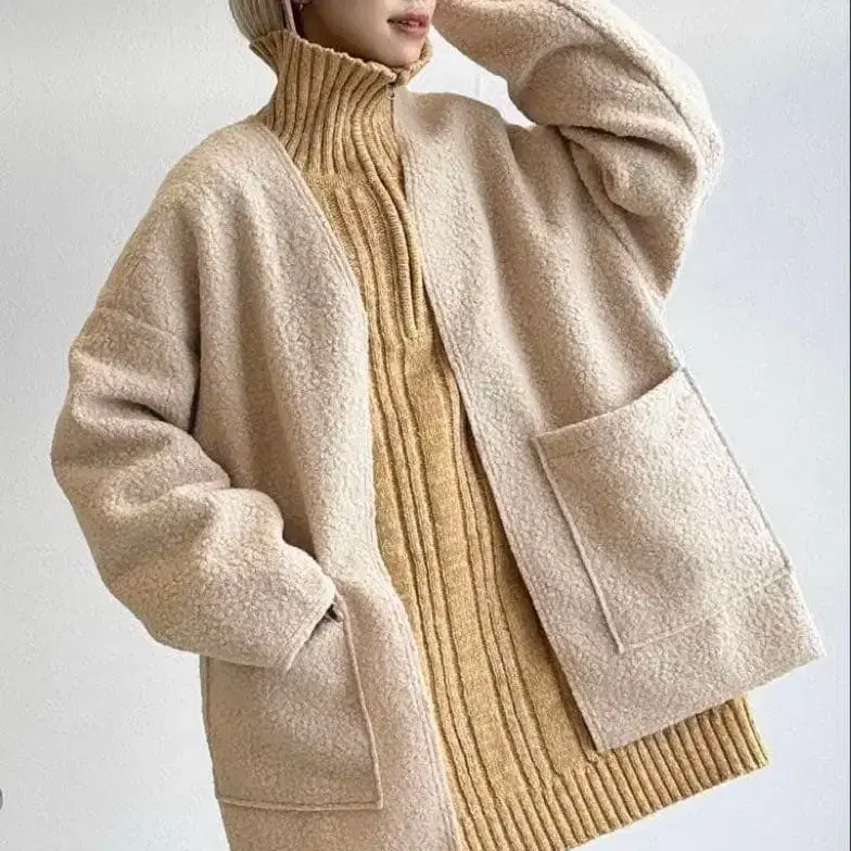 택 포함 새상품 보아 타입의 오버 사이즈 노카라 자켓 ▪️ 7,590 ▪️ 사이즈 가슴 너비: 65/어깨 너비: 65/총길이: 76/팔 길이: 49 ▪️ 소재 폴리에스테르 100% 복슬복슬한 소재의 2WAY 자켓 디자인 보아 소재의 겉옷으로 따뜻한 인상을 줍니다. 디자인은 프론트의 버튼을 없앤 심플한 외관에 큰 포켓이 눈길을 끕니다. 넉넉한 사이즈감으로, 스웨터나 맨투맨 등을 이너로 착용하면 추운 날에도 입을 수 있습니다. 뒷면은 약간의 광택감이 있는 깔끔한 인상이므로, 깔끔한 코디에도 입을 수 있습니다. 7가지 코디 디자인에 특징이 없으므로 어떤 아이템과도 궁합이 좋습니다. 기온에 맞춰 이너를 바꾸는 것으로, 오랜 기간 착용할 수 있습니다. 표면으로 착용할 때는 캐주얼한 인상이 되므로, 맨투맨이나 후드티 등과 함께. 뒷면은 깔끔한 인상이 되므로, 원피스 등과 함께 입으면 균형감 있게 코디할 수 있습니다. wcloset ] 아우터 > 노카라 자켓