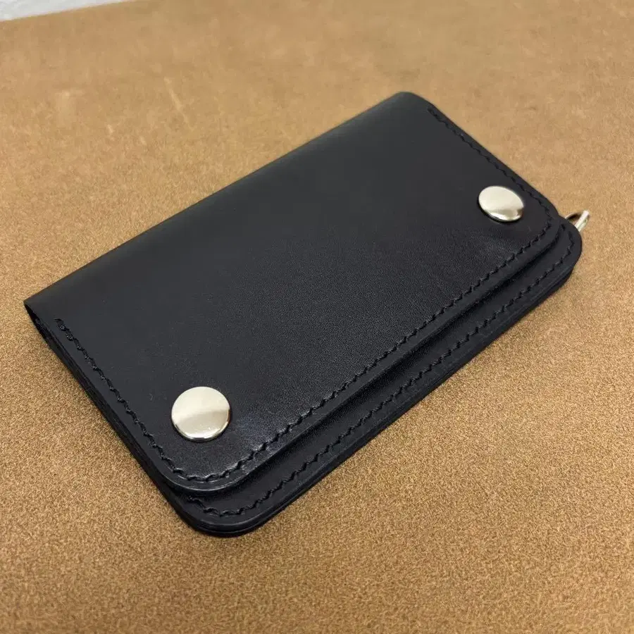 트래커 지갑 미들 얇은 타입 블랙 2층 히메지 가죽