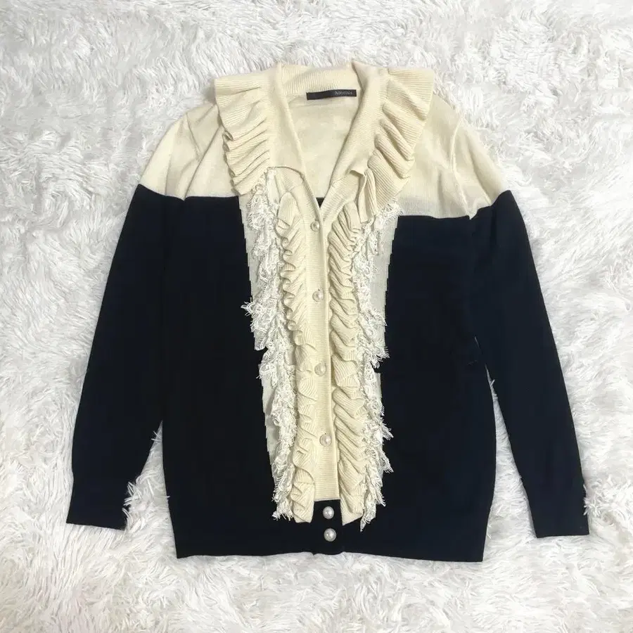 애도니시스 Adonisis 바이컬러 프릴 펄 버튼 가디건