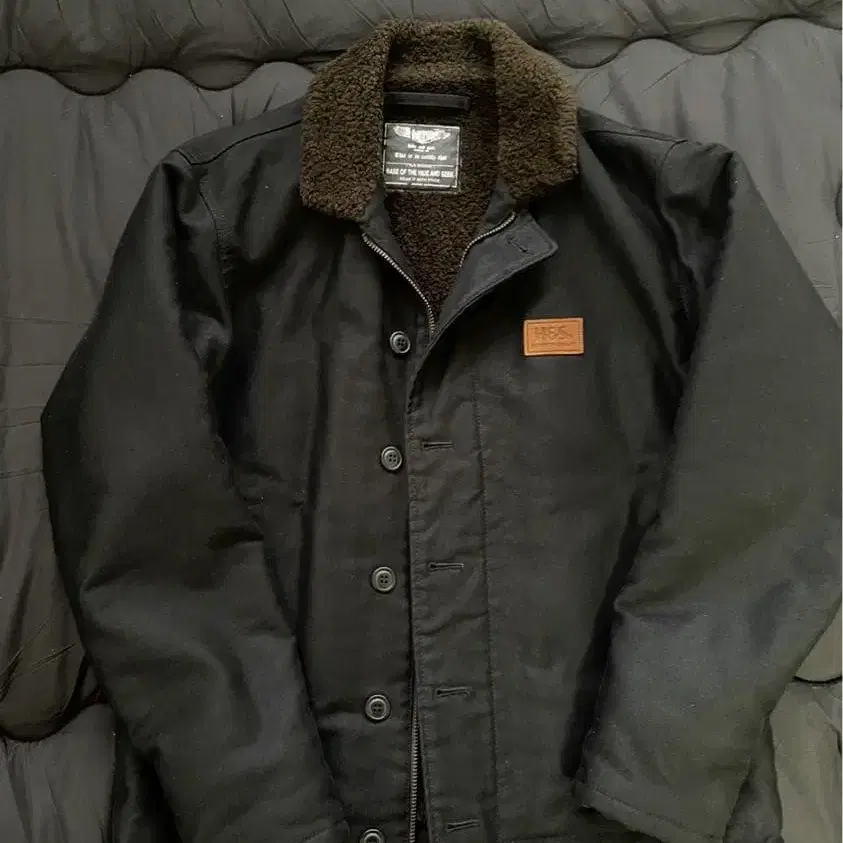 hideandseek 블랙 밀리터리 자켓 보아 카라 부착