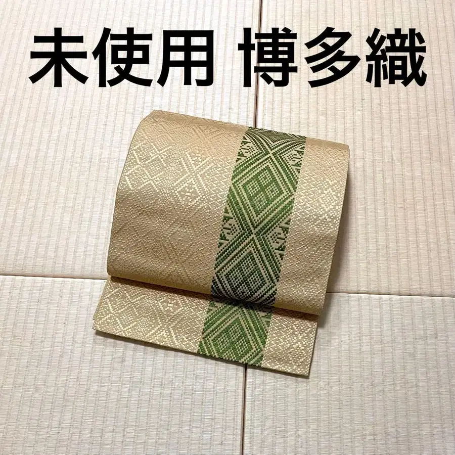 미사용 하카타 오리 초지색 x 이끼색 8촌 나고야 오비