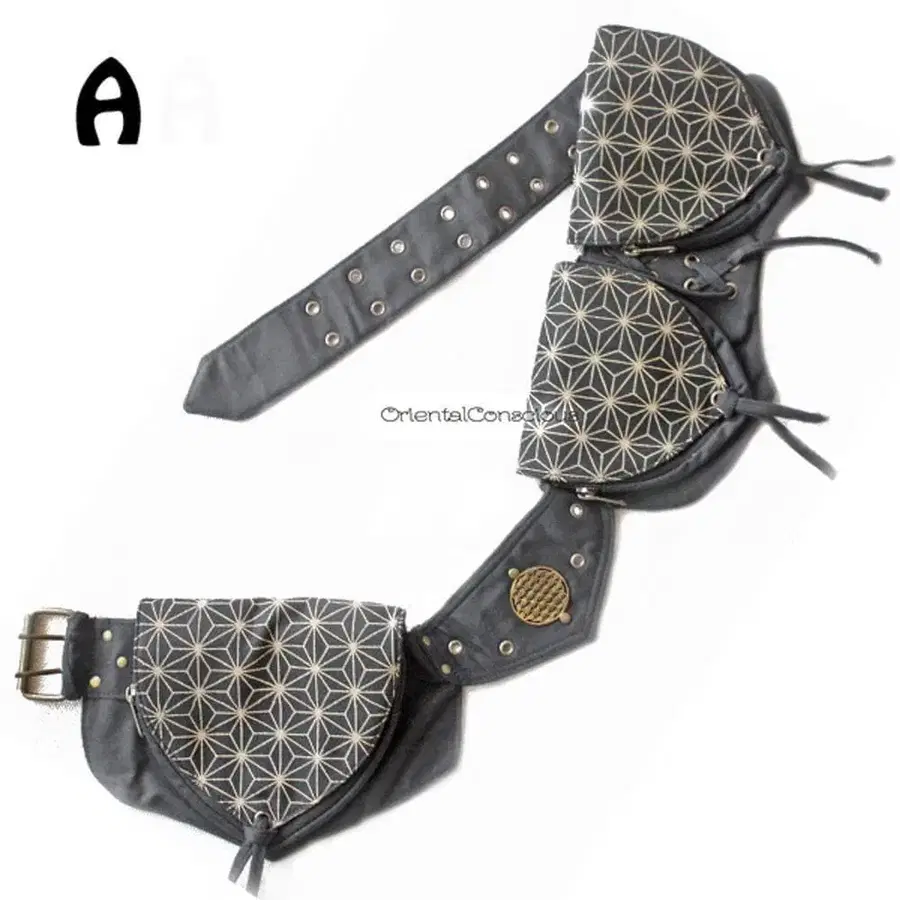 린넨 패턴 탭에 스터드 & 플라워 오브 라이프 메탈 부품 사용 등 디자인이 유니크한 힙색 ☆
