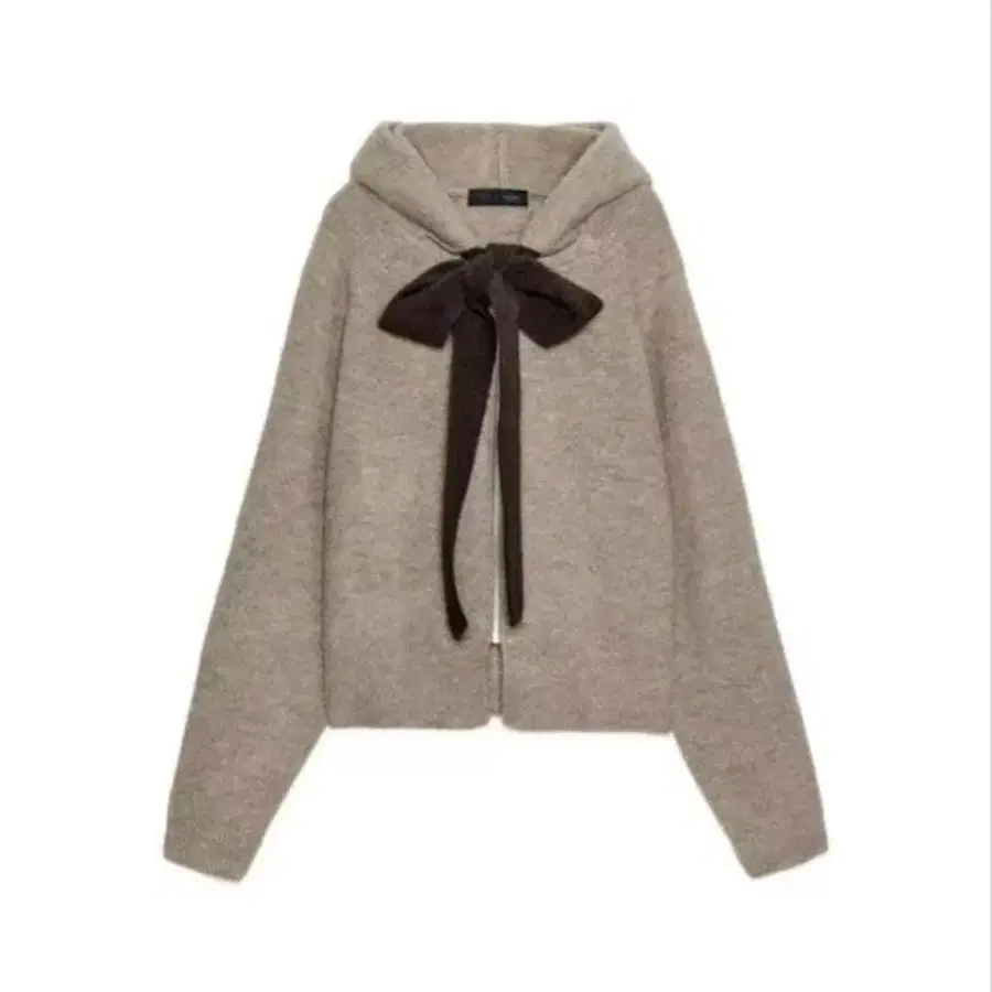 [새상품] ZARA 후드 부착 타이 벨트 니트 가디건 리본