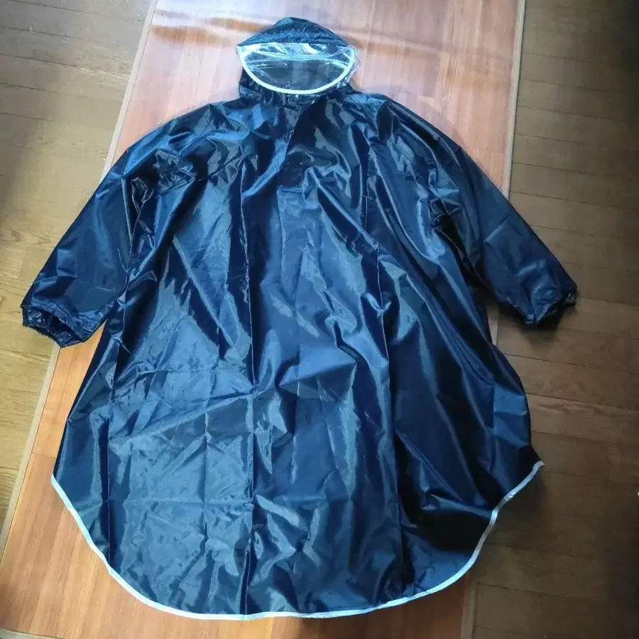 몇 번 착용하지 않은 후드 부착 레인코트 카파 우의 판초 네이비