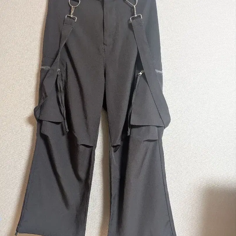 Lill 카고 팬츠 스타일의 블랙 팬츠, 서스펜더 부착으로 기능적. - 색상: 차콜 - 디자인: 카고 팬츠 스타일, 서스펜더 부착 - 특징: 프론트 지퍼, 포켓 부착 방문해 주셔서 감사합니다.