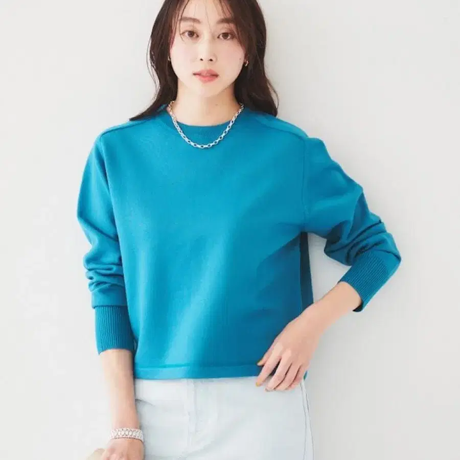 표면은 스펀지 같은 터치의 폴리에스테르, 피부에 닿는 뒷면은 코튼의 쭈리(파일 안감) 느낌을 니트로 표현했습니다.