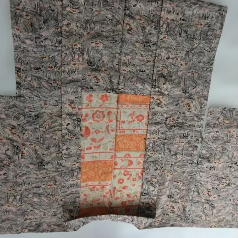 앤티크 크레이프 원단 겉옷 그레이 바탕에 추상 문양
