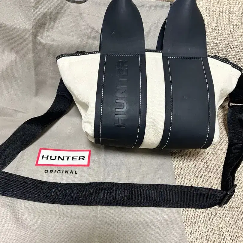 HUNTER 리파인드 스티치 미니 토트백 화이트 블랙