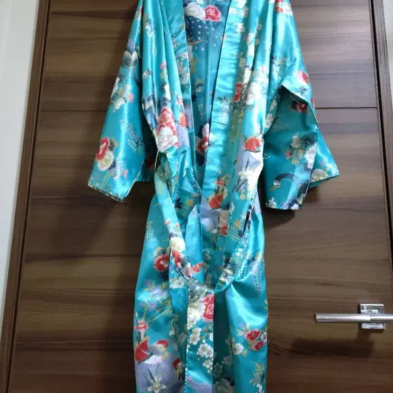 기모노풍 터콰이즈 일본풍 패턴 새틴 로브