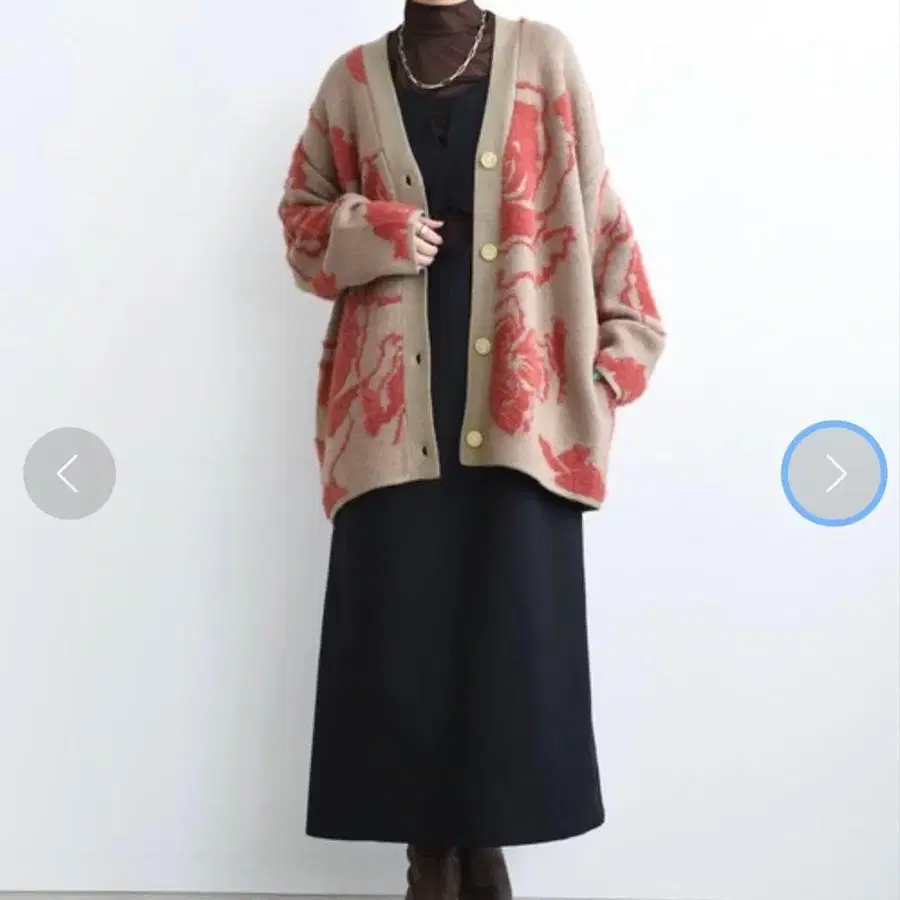 새상품급 에이미 로우 샤기 플라워 자카드 가디건 니트