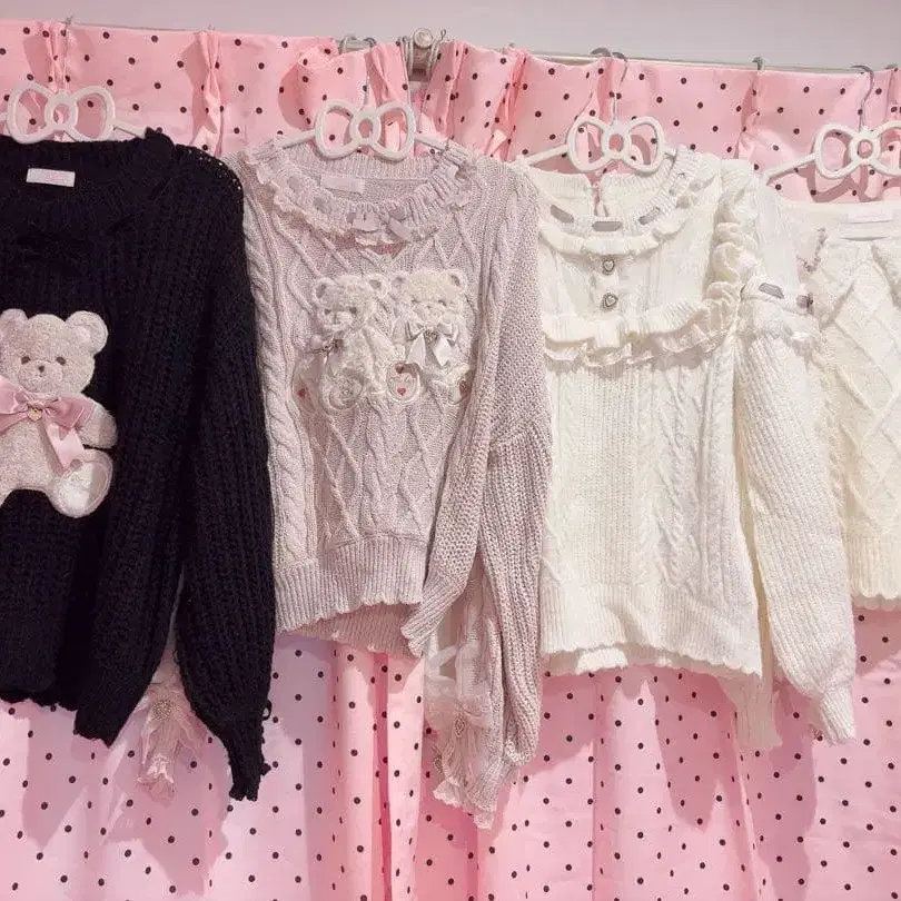 LIZLISA 니트 4세트 베어 핑크 화이트 블랙