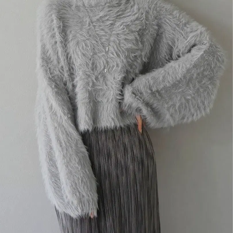 Lumier 하이넥 볼륨 슬리브 샤기 니트