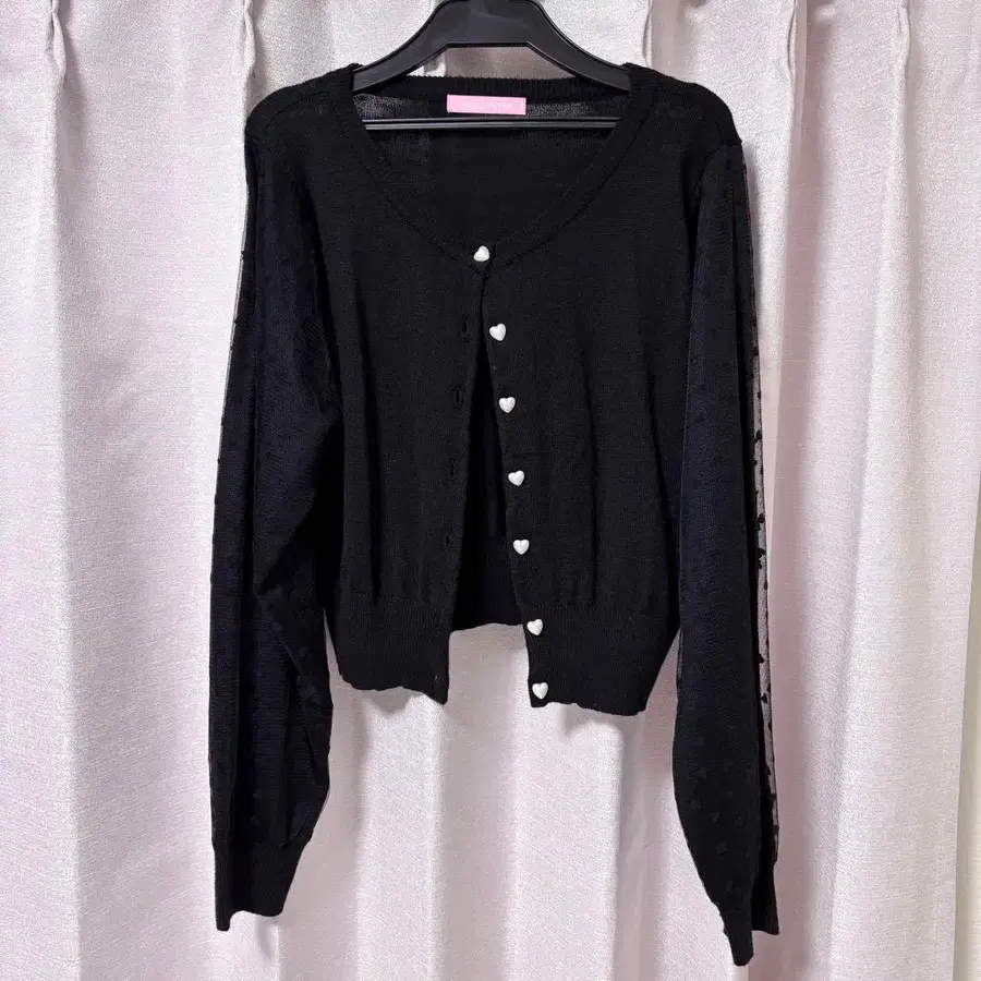 허니시나몬 소매 튤 하트 버튼 가디건 블랙 양산형