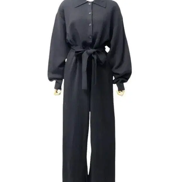 CLANE 23AW 루즈 니트 올인원 허리 리본 블랙