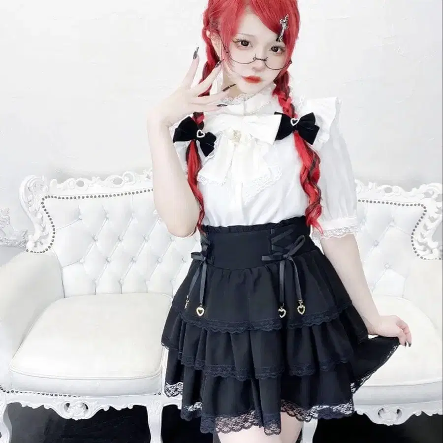 MARS 허리 레이스업 3단 프릴 스커트