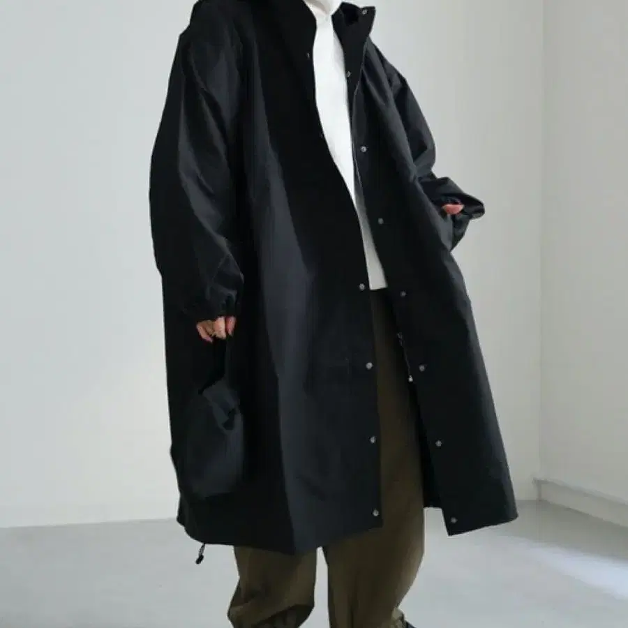 아페레트로 ap 레트로 볼륨 슬리브 후드 롱 블루종 코트