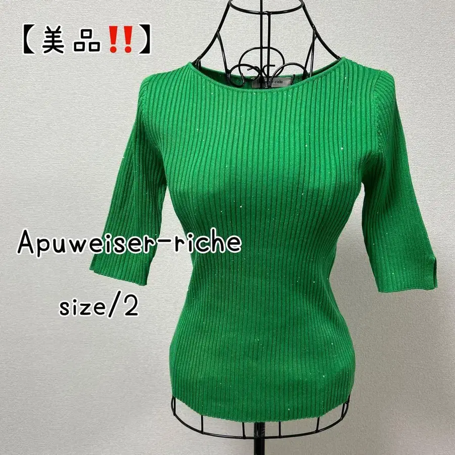 [새상품급] 아푸와이저 리셰 스팽글 리브 니트 그린 M 레이온 혼방