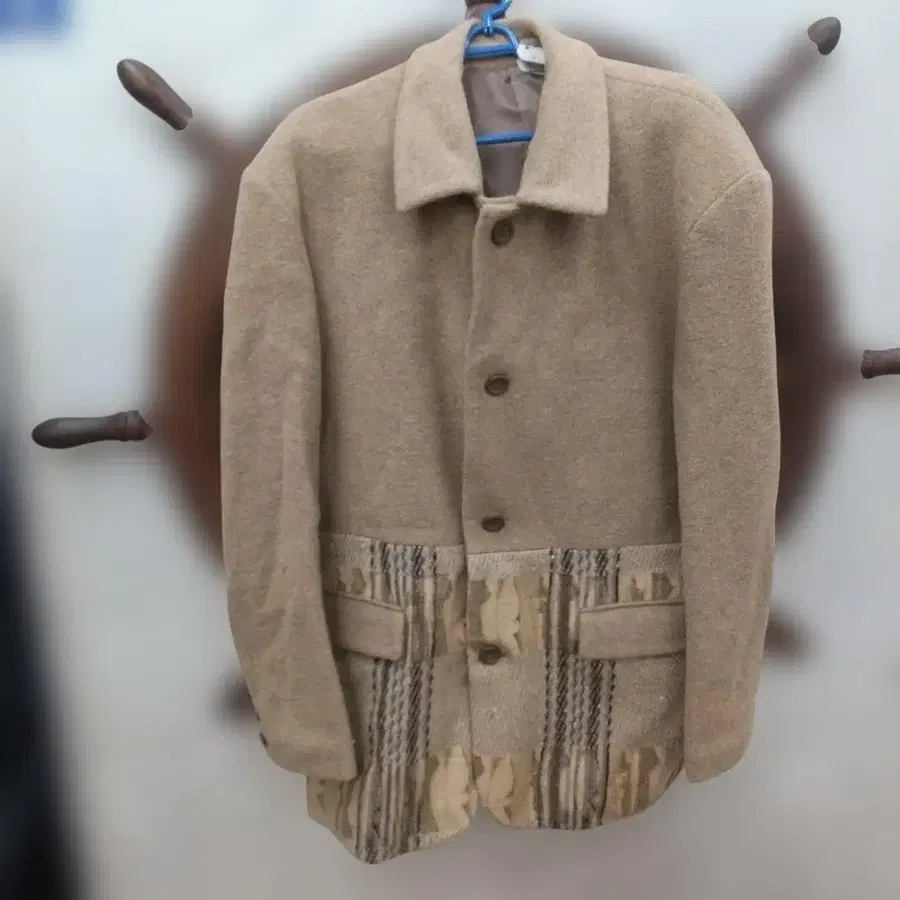 Point cbarLy 울 혼방 베이지 코트 체크 포켓 부착