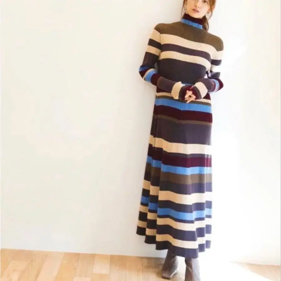 Mila Owen 스트라이프 터틀넥 롱 원피스