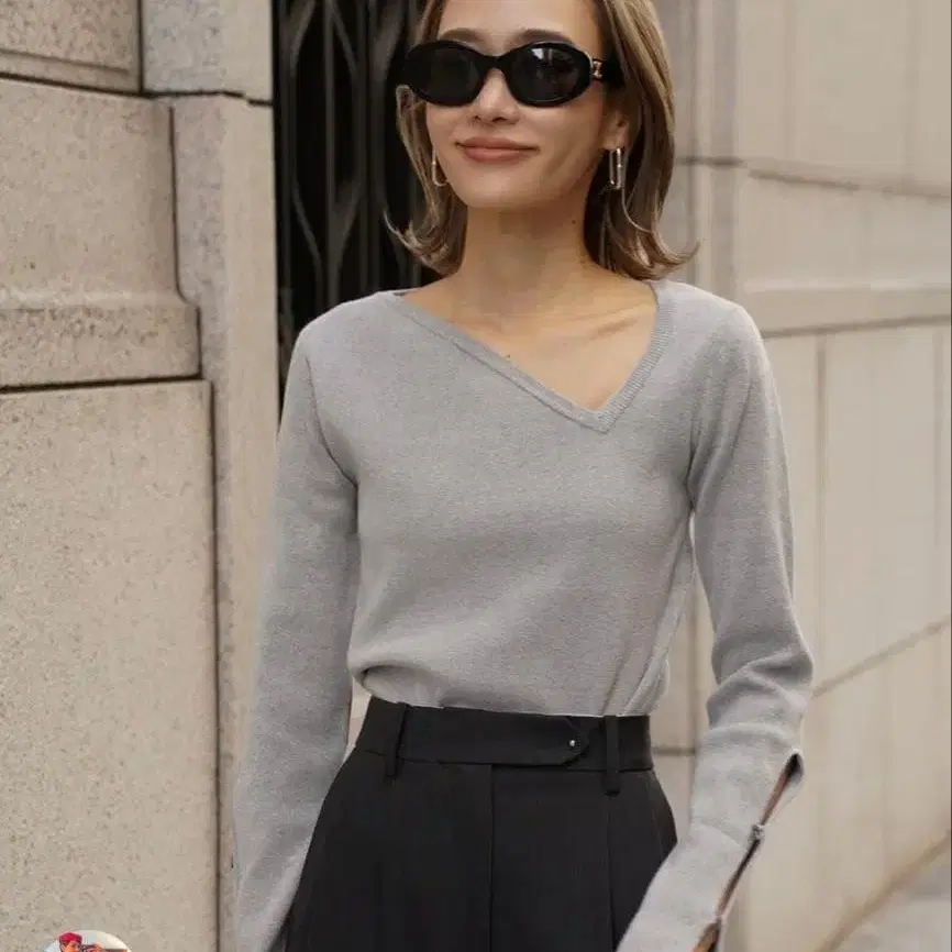 ellie 그레이 V넥 니트 스웨터 긴팔
