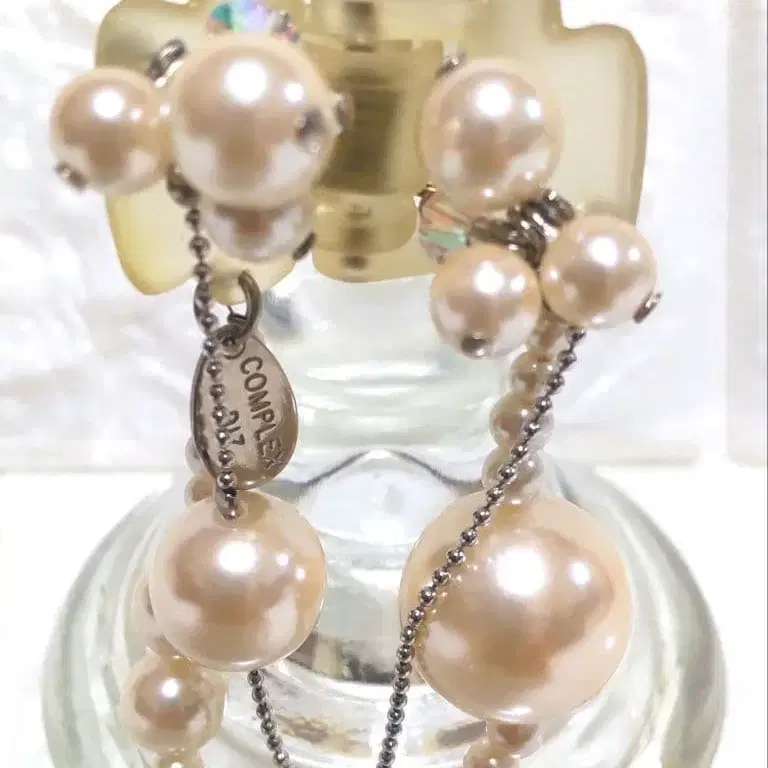 컴플렉스 비즈 펄 화이트 비즈 장식 헤어 클립