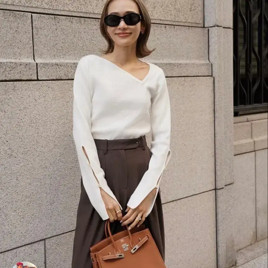ellie 화이트 V넥 니트 긴팔