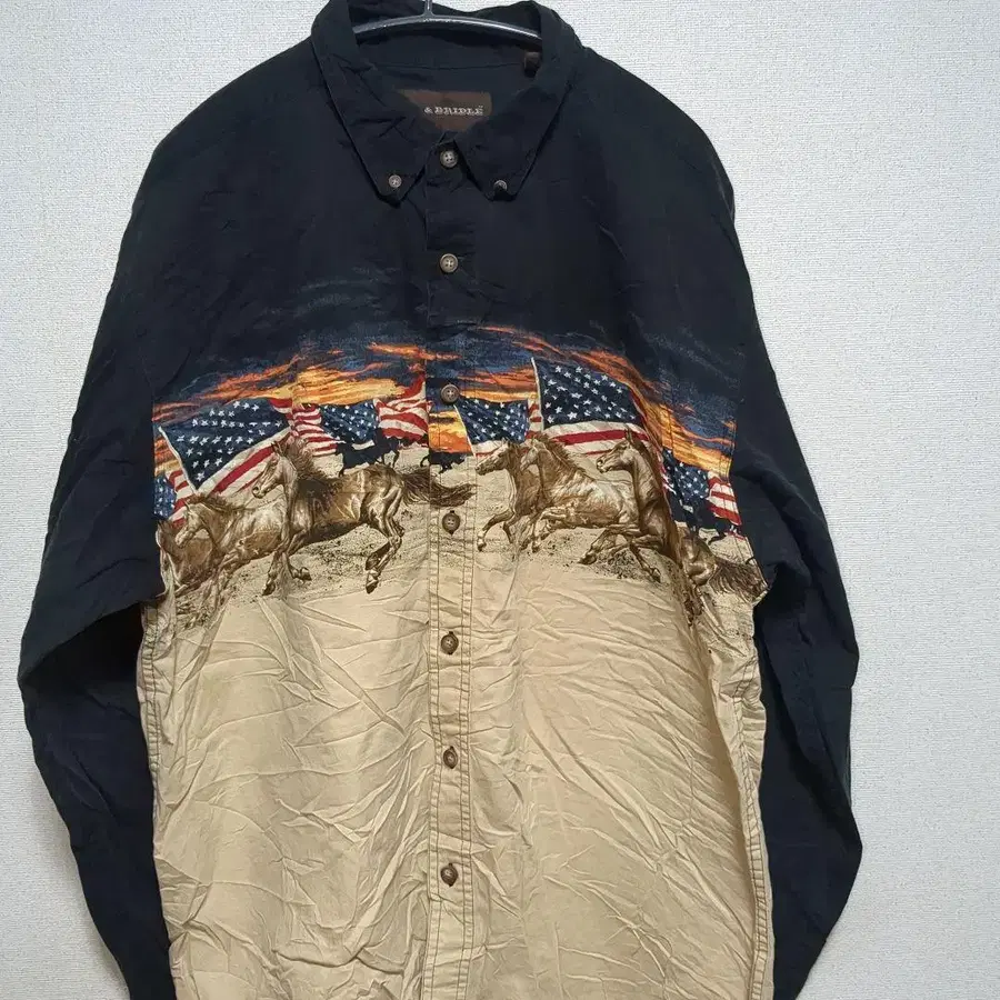 말 미국 국기 성조기 사막 애니멀 긴팔 셔츠 해외 구제 의류 남성용 L