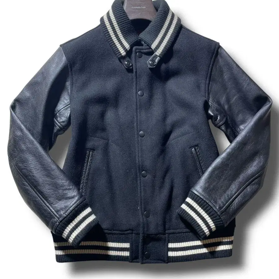 BEAMS 바시티 자켓 돈키 옷깃 소매 가죽 절개 파라오 자켓 블랙