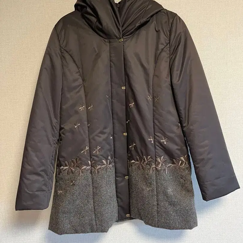 목이 따뜻한 트위드 자수 디자인 하프 코트 레리안