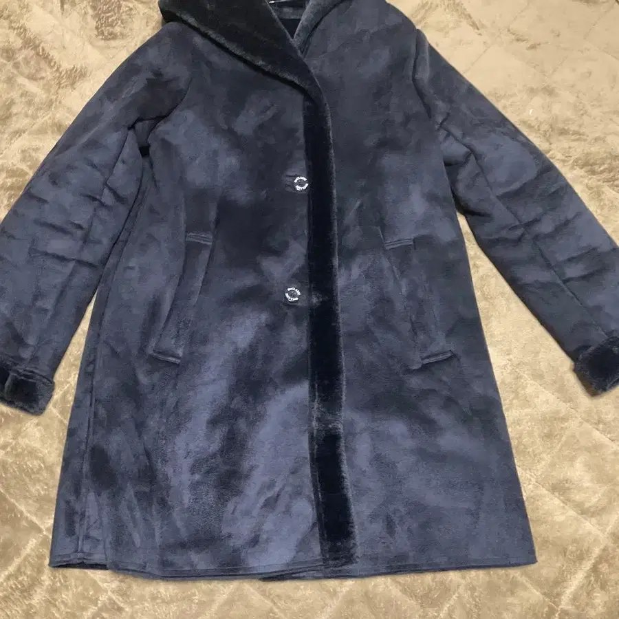 네이비 스웨이드 느낌 후드 부착 코트