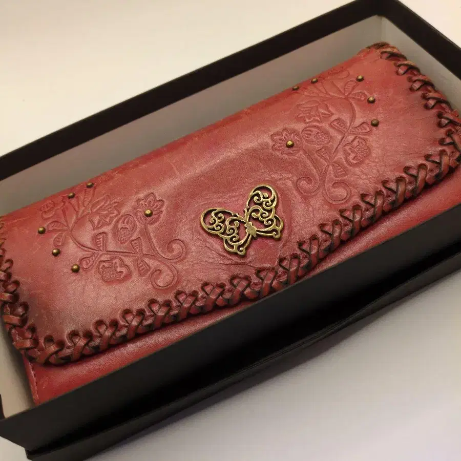 RITTA SUI 자수 뜨개질 장지갑 빨간색