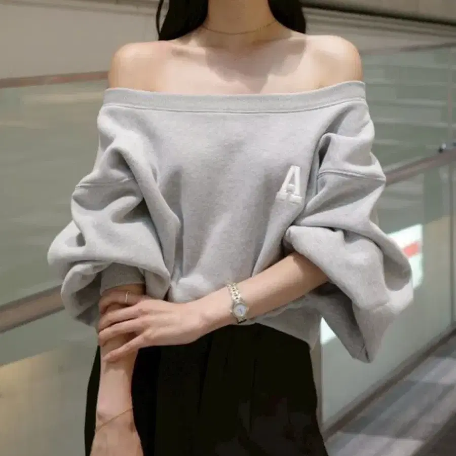 ACYM A 로고 오프숄더 맨투맨 그레이