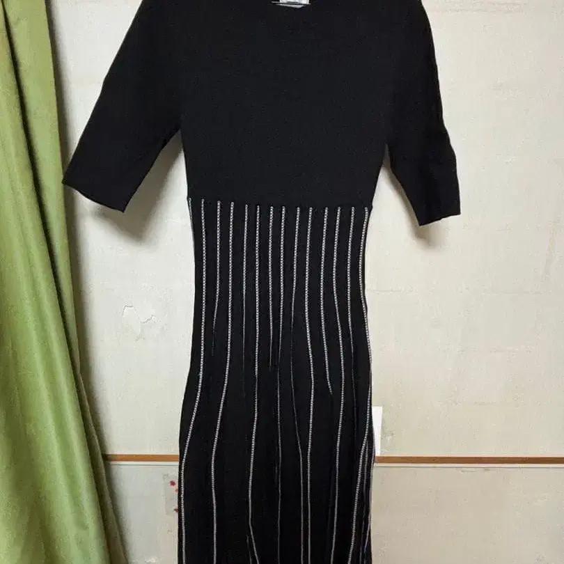 FRAY I.D 스트라이프 니트 반팔 원피스 블랙 프레이 아이디