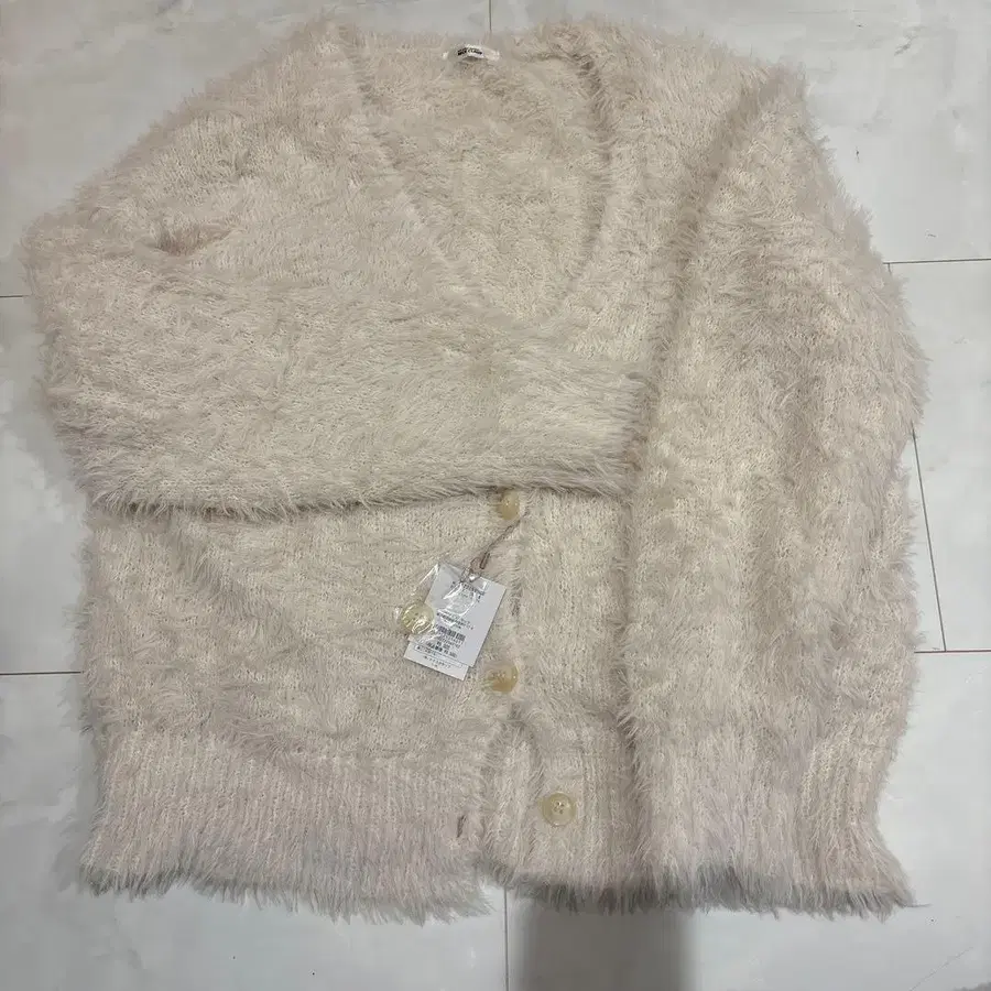 NICE CLAUP 니트 가디건 화이트 복슬복슬 원피스