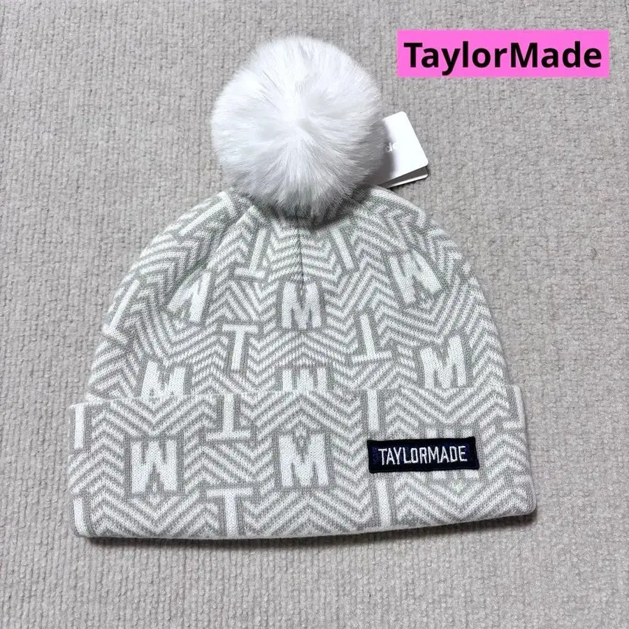 [ 새상품 ] 테일러메이드 폼폼 포함 니트 모자 비니 화이트
