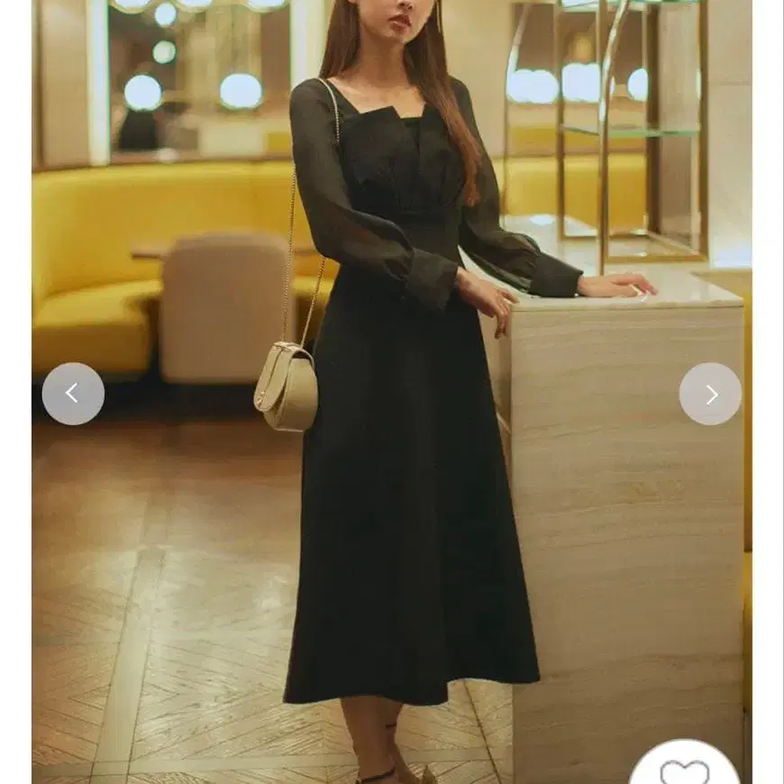 • 스나이델 롱 플레어 원피스 데콜테 오픈 페미닌