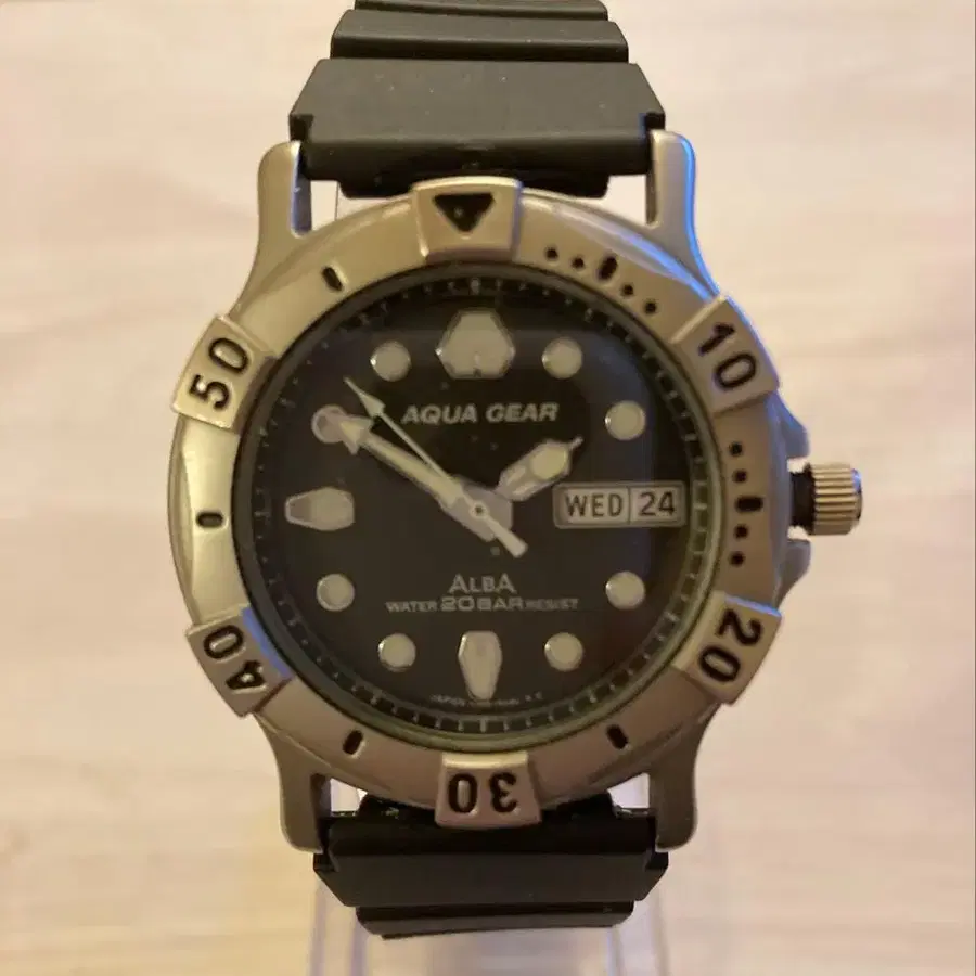작동품 세이코 알바 아쿠아기어 다이버 워치 데이데이트 블랙